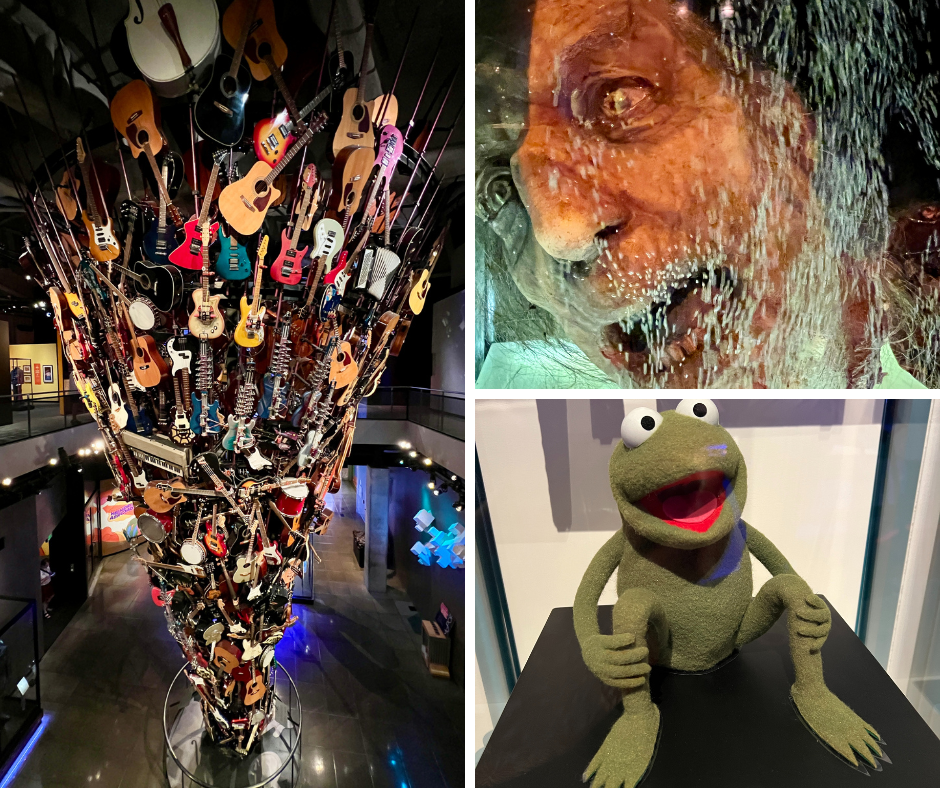 After the Space Needle, we headed next door to the Museum of Pop Culture. It’s a really fun building on the outside, and inside was way bigger than I anticipated. There are separate rooms for all different themes: horror, sci-fi, fantasy, indie video games that you can play, music, and exhibits specifically for Jimi Hendrix, Nirvana, and the history of African American Music. We spent most of our time taking pictures in the Fantasy room, and playing various instruments in the music room. The music room has individual studios you can play in if you know what you’re doing, and instruction videos if you want to learn the basics of a new instrument. Who needs Hanson when your friends can attempt their own version of “Crazy Beautiful”?