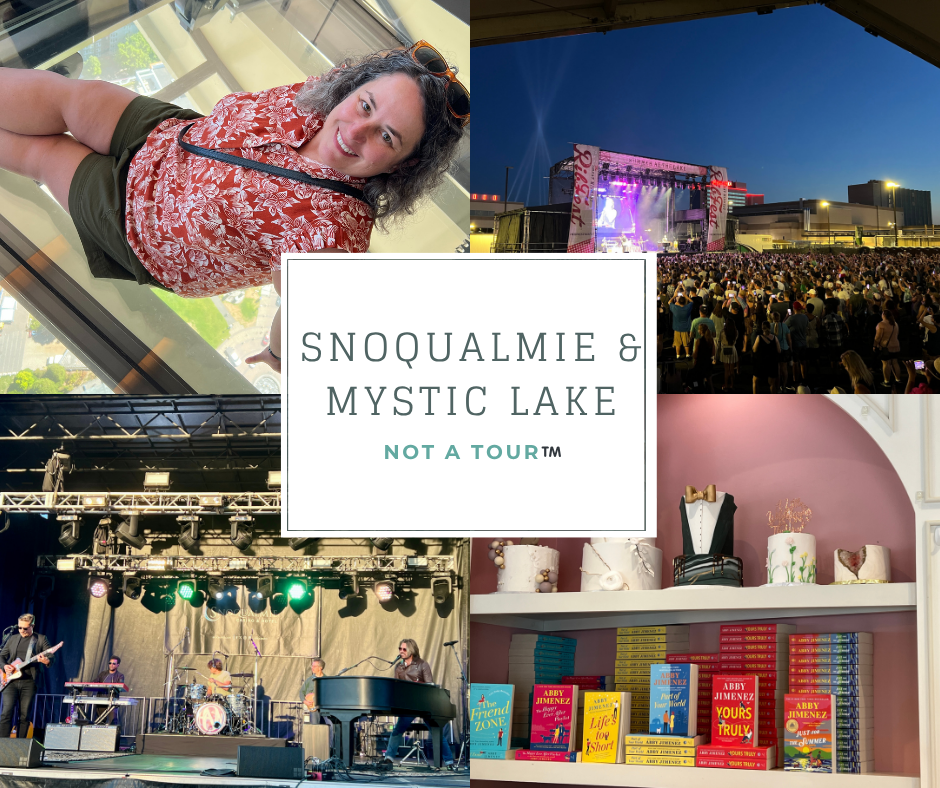 My friends and I had looked into possibly doing a hike on this trip, but almost everything we came across was either too far out of the way, or too difficult for our skill level. We settled on taking a quick trip to Snoqualmie Falls the day of the Hanson show, since we would be in that area anyway. There’s a very accessible viewing area of the top of the falls, just beyond the parking lot. At first, we thought that was all there was to it. But, then we found a sign for a trail and made our way down to the bottom of the falls. It was only a half mile long, but we were not prepared for how rocky and steep the walk would be! I haven’t been very active since my car accident last fall, so I had to stop and catch my breath a few times on the way back. It made me glad we didn’t attempt a more difficult hike after all, and was a good note to self to get active again. We ended our excursion with some coffee and treats from the little cafe in the gift shop, again enjoying the perfect weather.